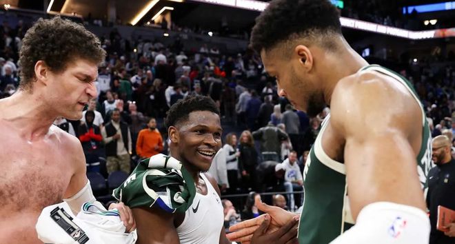另一方面,关于字母哥的潜在交易方案已浮出水面。美媒近期晒出尼克斯与雄鹿的1换6交易构想:尼克斯送出阿奴诺比、米切尔-罗宾逊、麦克布莱德三位即战力球员,外加三个首轮签,从雄鹿换来字母哥。从筹码价值来看,阿奴诺比是联盟顶级的3D侧翼,米切尔-罗宾逊能补强内线防守,三个首轮签则能为雄鹿未来重建提供关键资产,这样的报价对已濒临“重建边缘”的雄鹿而言,无疑是极具吸引力的选择。而对尼克斯来说,得到字母哥后,将能组建起“字母哥+现有核心”的争冠阵容,进一步巩固东部顶级强队的地位。